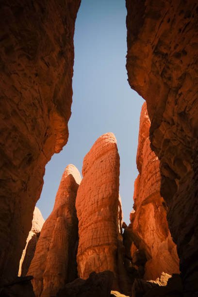 Next on our adventure is the otherworldly Ennedi Plateau. This UNESCO World Heritage site boasts dramatic rock formations, ancient cave paintings, and desert landscapes that seem to belong to another planet. Exploring the labyrinthine rock arches and canyons is like wandering through an artist’s surreal masterpiece.